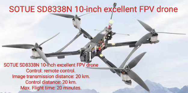 Optional use: SOTUE 15-inch or 18-inch or 20-inch or 25-inch or 30-inch excellent FPV drone which is flying with SOF25A optical fiber communication cables will not be jammed by any equipment and will be controlled safely and very reliable.