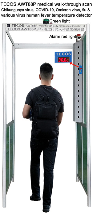 Manufacture: 1. TECOS series medical walk-through automatic scan Dengue Fever virus, Chikungunya virus, Omicron virus, COVID-19 virus, Monkeypox virus, Delta virus, flu and various virus human fever thermometer gate (thermal scanner gate). 2. Walk-through medical big range automatic scan Dengue Fever virus, Chikungunya virus, flu, Omicron virus, COVID-19 virus, JN.1 virus, Monkeypox virus and various virus human fever body temperature detector (mass human fever screening camera system). 3. Infrared ear and forehead thermometer, virus human fever clinical thermometer, medical oxygen concentrator, digital medical clinical thermometer, Ebola virus and Dengue Fever virus human body fever temperature detector. 4. H7N9 flu & H3N2 flu & H1N1 flu body fever temperature detector, SARS virus & Lassa virus & Zika virus body temperature detector, Malaria virus & MERS virus human fever temperature detector.